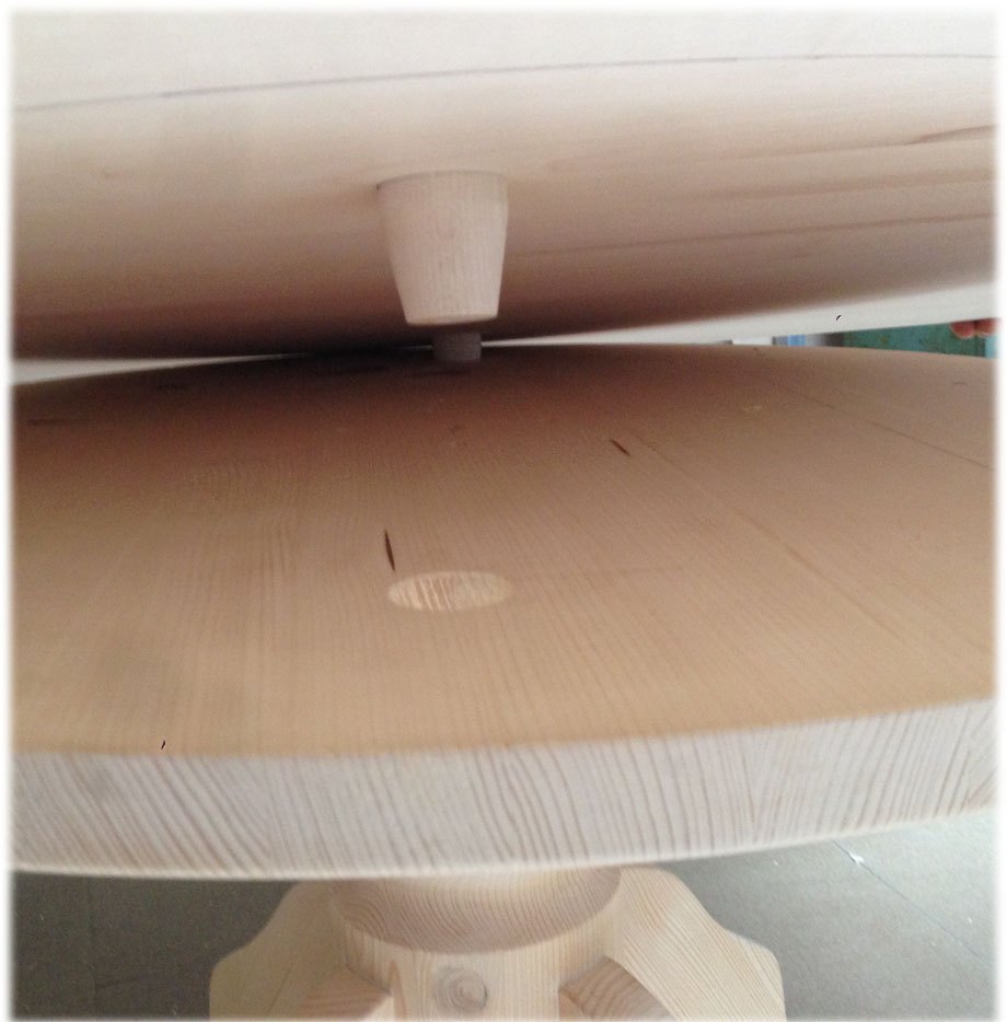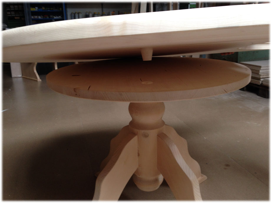 Kreuzfuß Rundtisch Lindau, D120, Fichteplatte, ohne Schubladen, mit 2 Einlegeplatten 40 cm