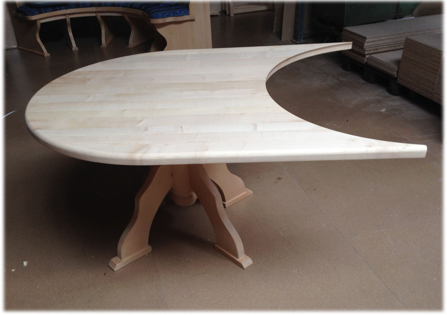 Kreuzfuß Rundtisch Lindau Anstelltisch Segmentplatte mit Konterprofil
