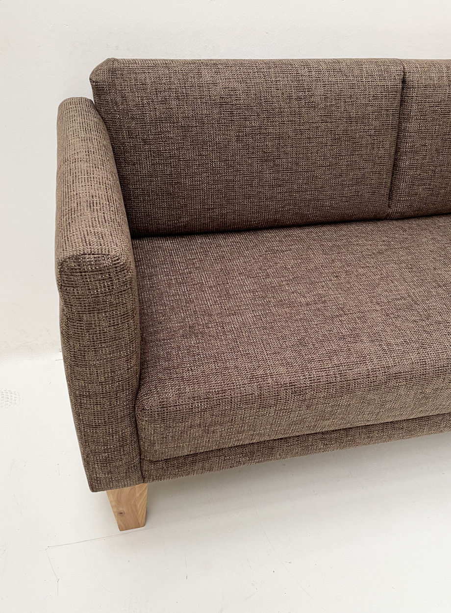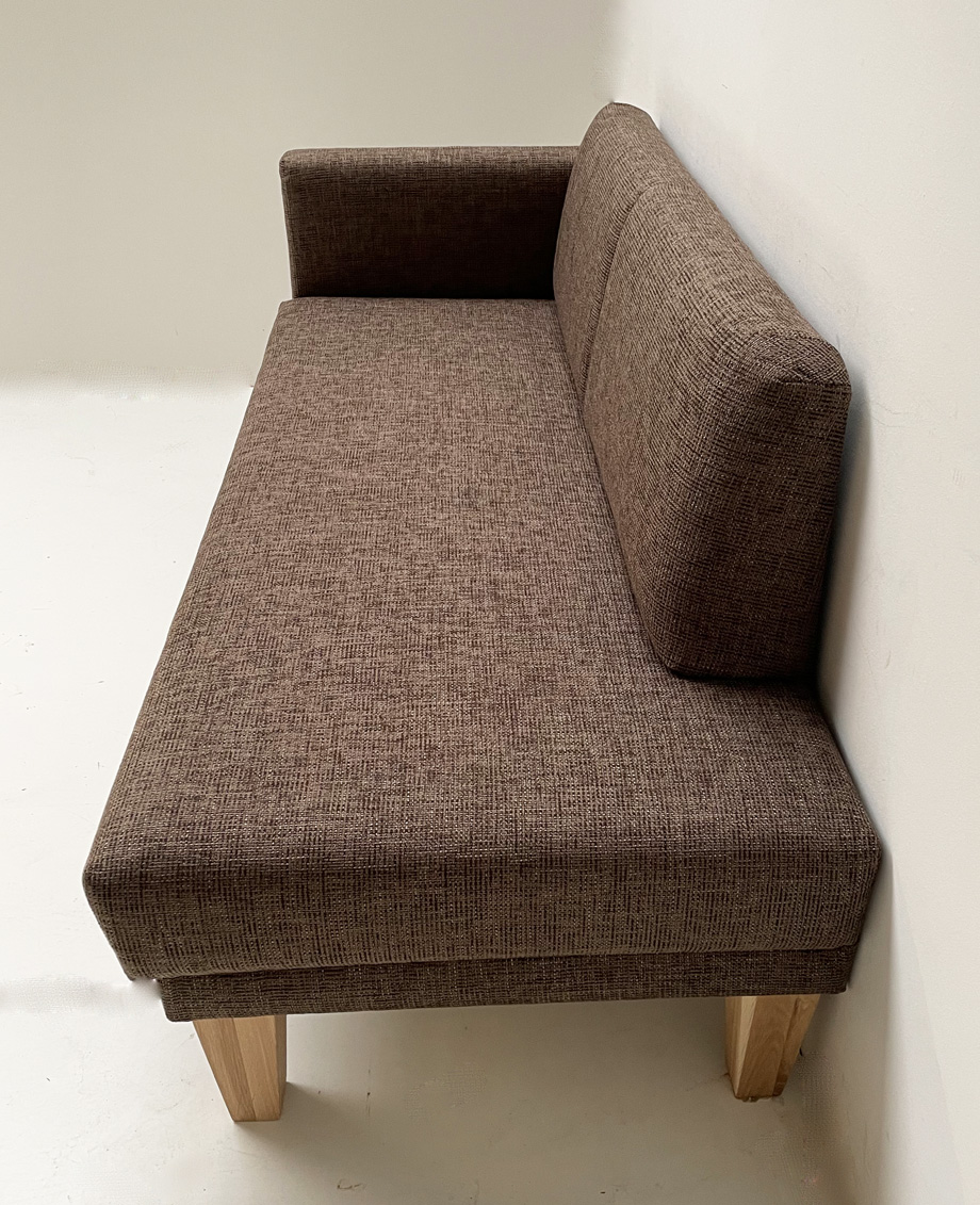 Holzteile in Eiche geölt, Stoff. Stoff Hoepke Natura braun 804, 67% Polyacryl, 33% Polyester, Stoffbreite 140 cm, 600 g/lfm