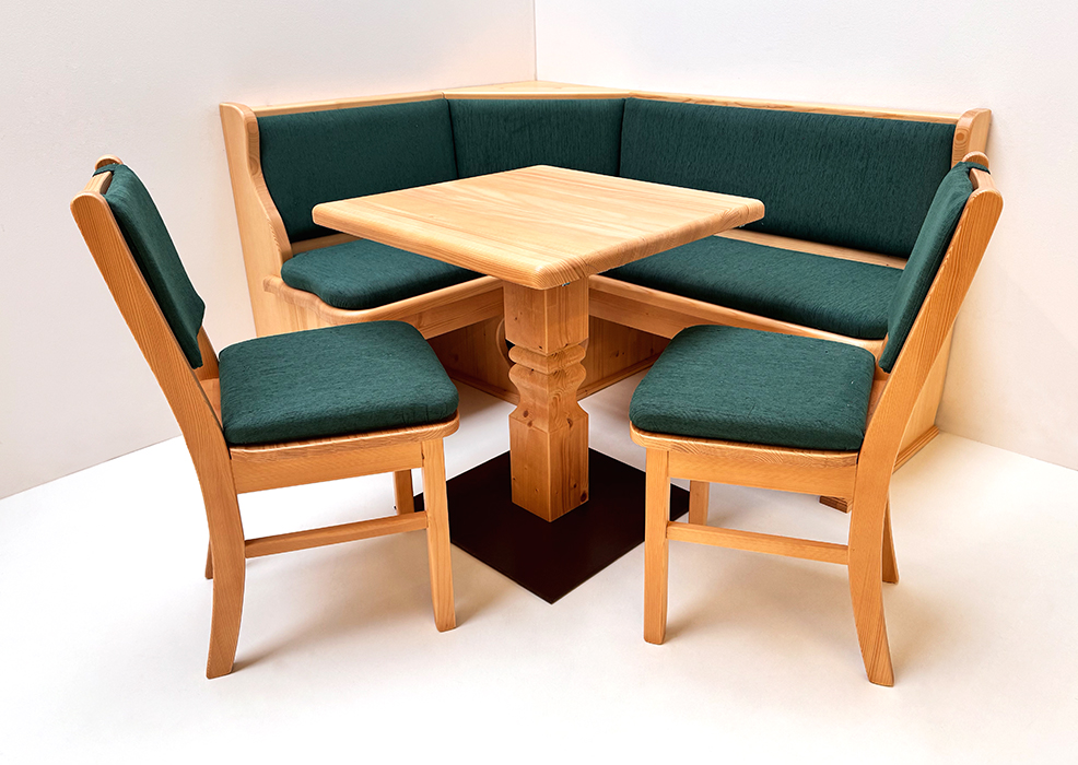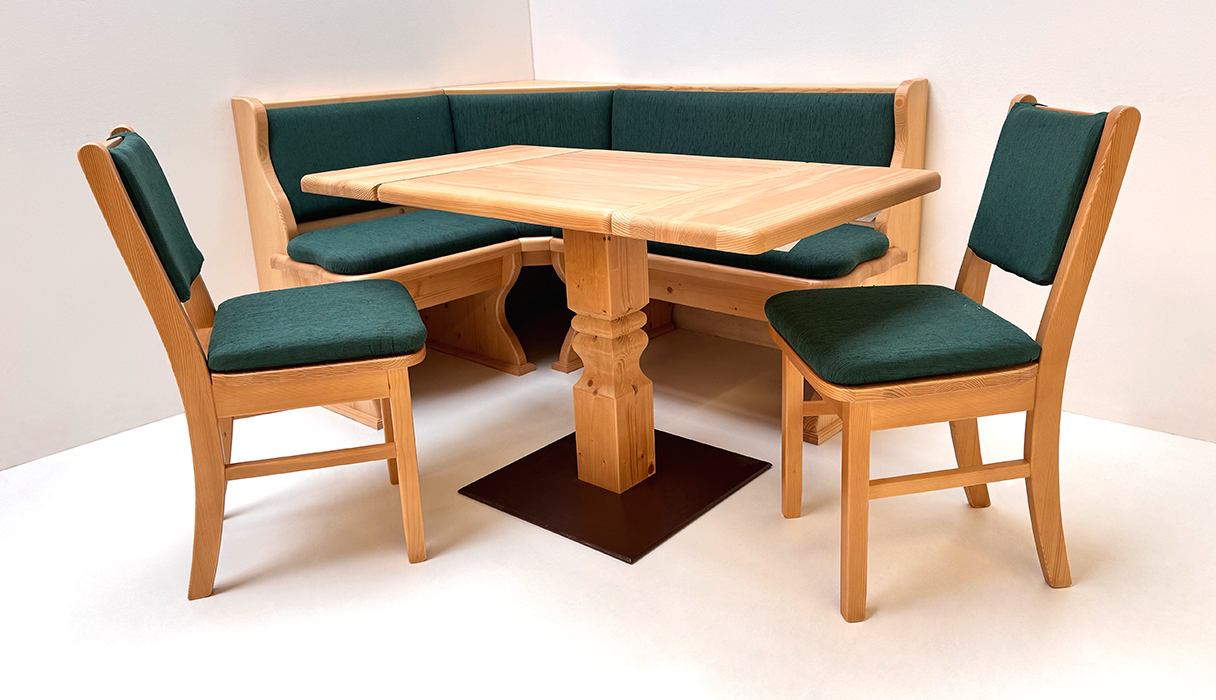Eckbankgruppe LINDAU 125/165 Fichte, Tisch 4510-Amberg, Bauernstühle Munich, Polster genäht TS-3003