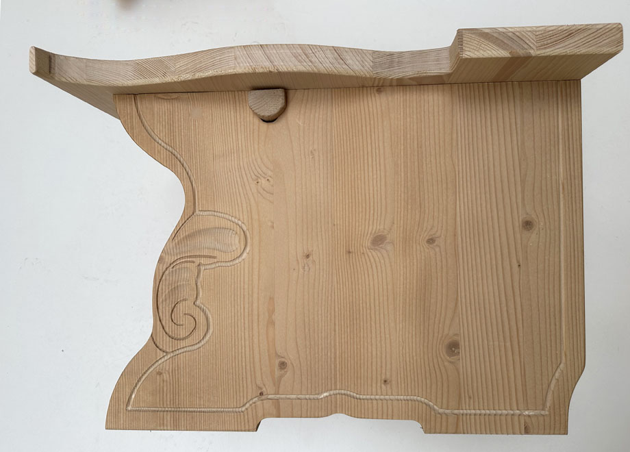 Anstellhocker Eckbank Landau, Wangen geschnitzt, Rosner gewachst
