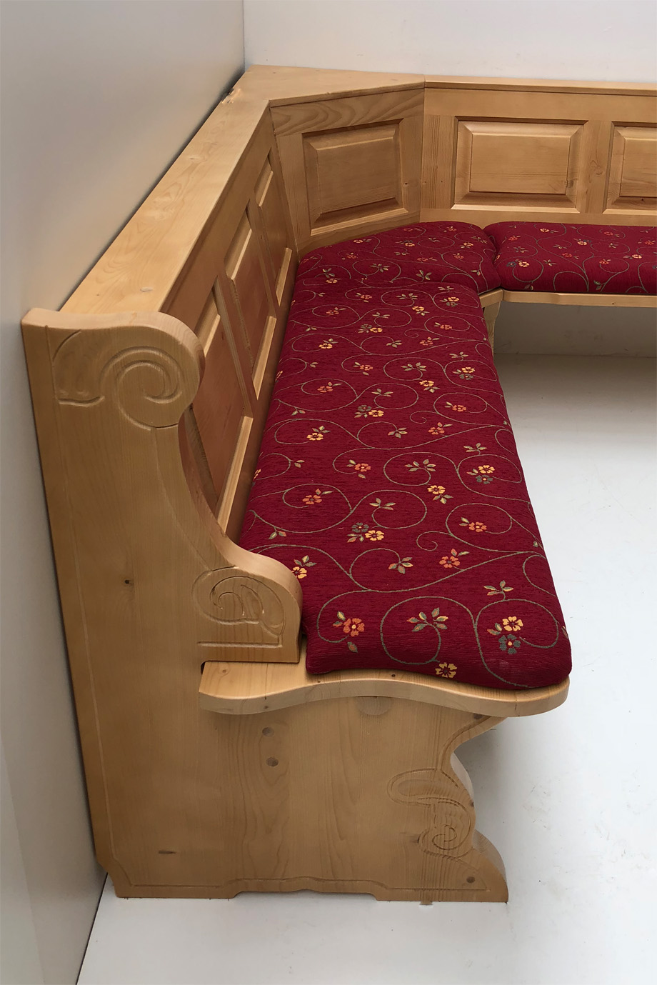 Eckbank Landau solo 195/195 cm, Rosner Lackiert, Polsterplatte , Pöchlarn Ranke bordeaux