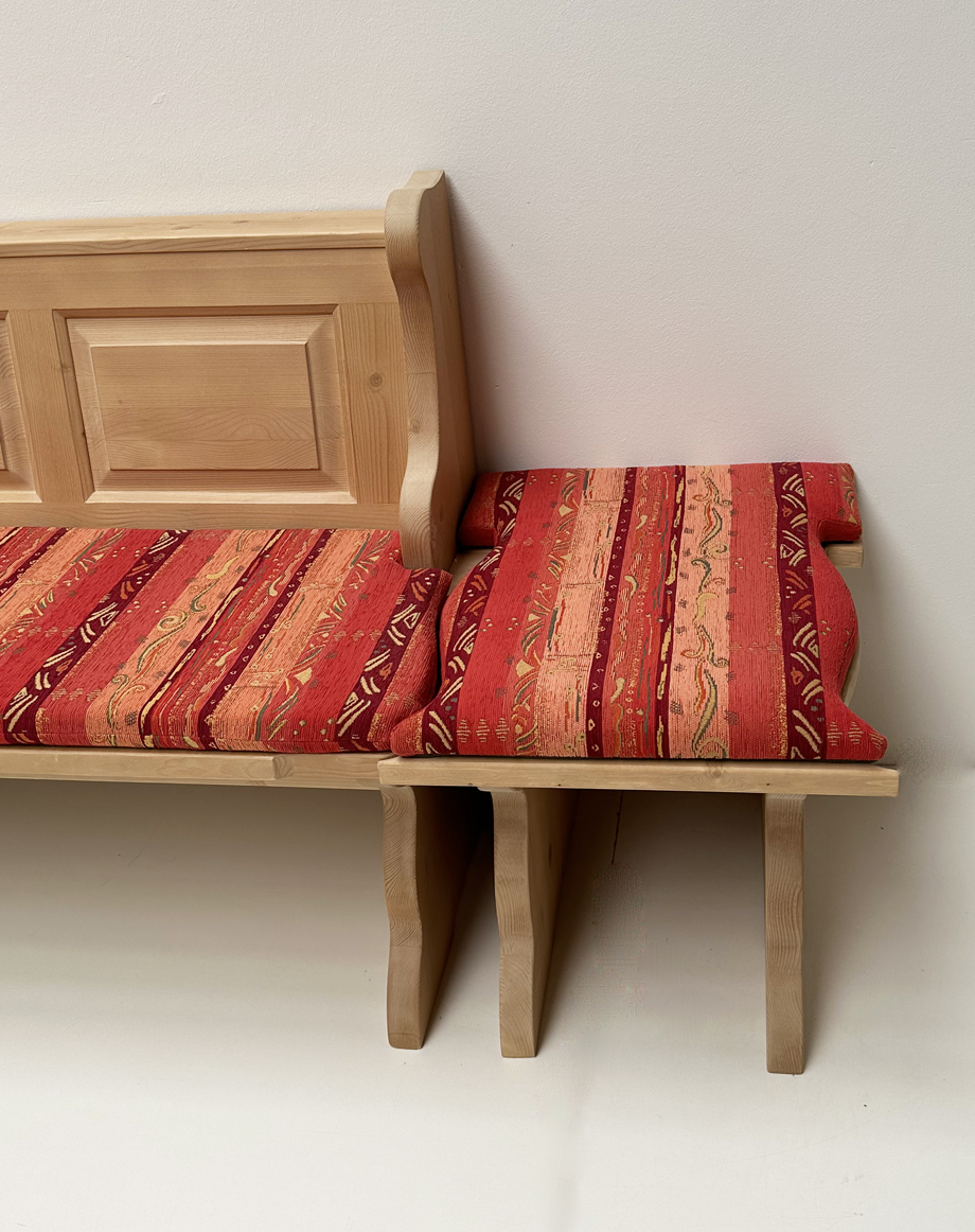 Anstellhocker Eckbank Landau Wangen geschnitzt, Rosner gewachst, Polsterplatte Pocking bordeaux