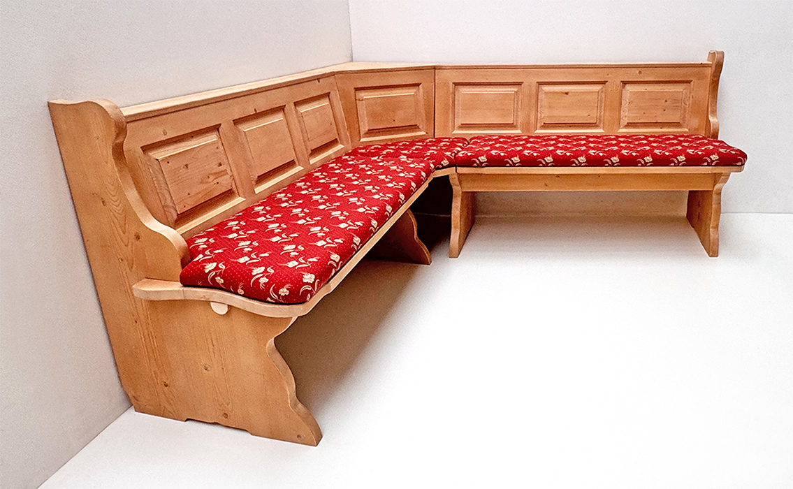 Eckbank solo Mod. Landau, 195/195 cm, mit Truhen nach oben aufklappbar! Massivsitz, Aussenwangen glatt
