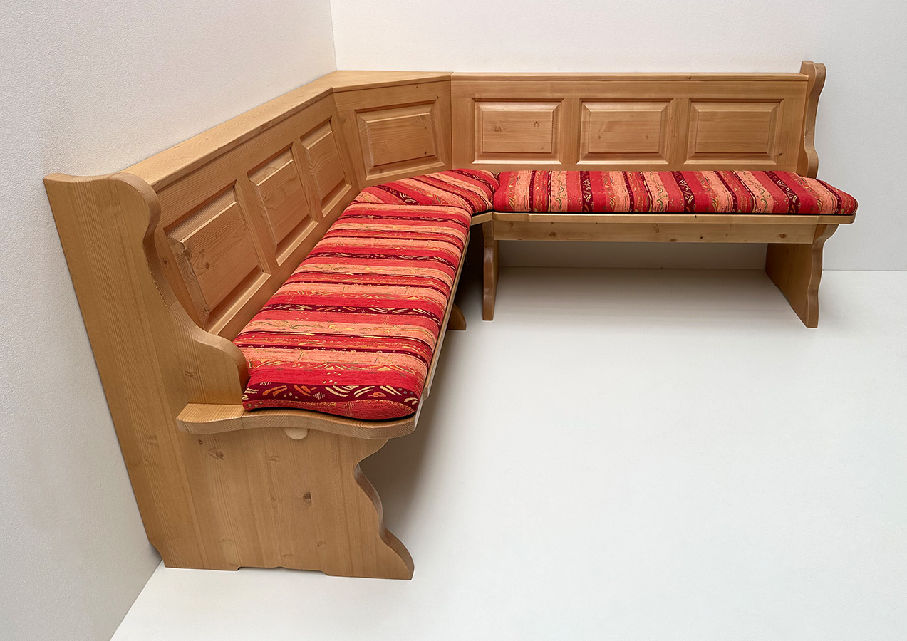 Eckbank solo Mod. Landau, 195/195 cm, mit Truhen nach oben aufklappbar! Massivsitz, Aussenwangen glatt