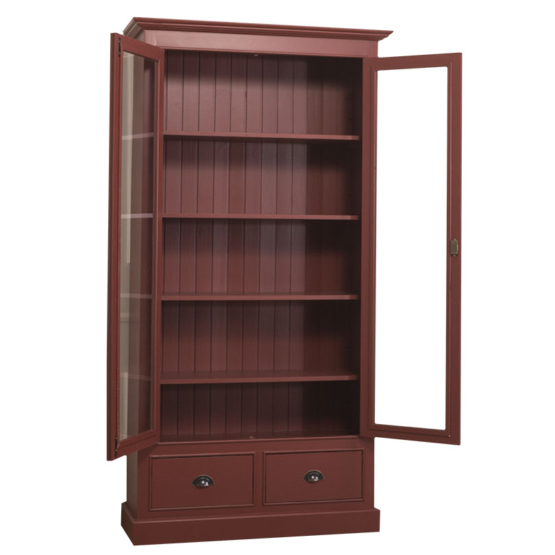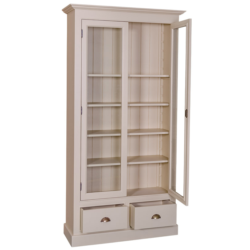 Vitrine, 2 Schubladen, Kiefer massiv, zweifarbig antik lackiert