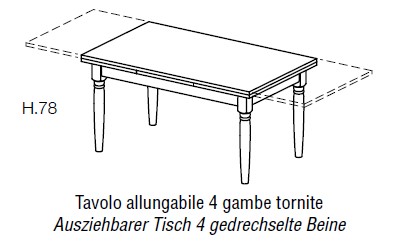 - 4-Fuß-Tisch ausziehbar 150/250 (L) x 90 (B) x 78 (H)