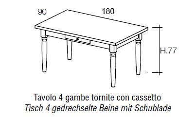 4-Fuß-Tisch mit Schublade, 180 x 90 cm, Fichte massiv