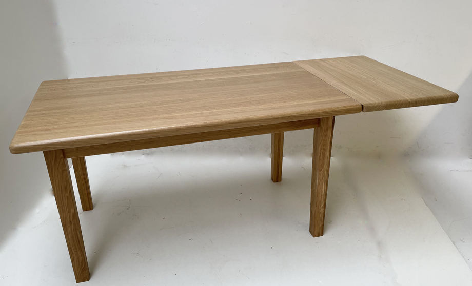 Vierfußtisch ISEO, Wildeiche 145/85 cm, Platte 4 cm stark, Ansteckplatte 50 cm, mit Konterprofil