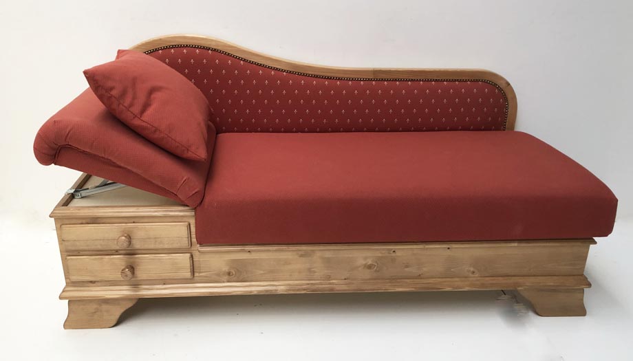 1 Sofa Liege Garmisch Kopfteil links wenn man davorsteht und auf die Liege sieht, 2 große Schubladen,
