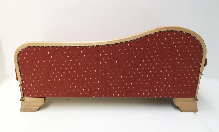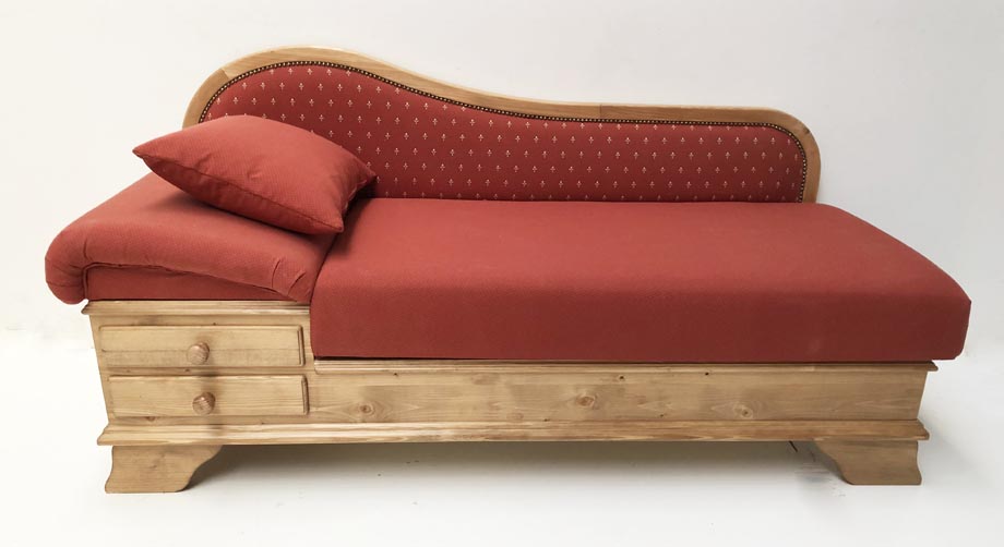 Kurzsofa Liege Garmisch, Antik hell, Kopfteil Links, Rücken Echtstoff, Kundl rot