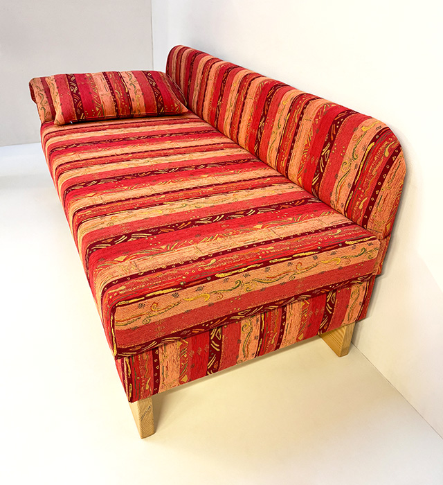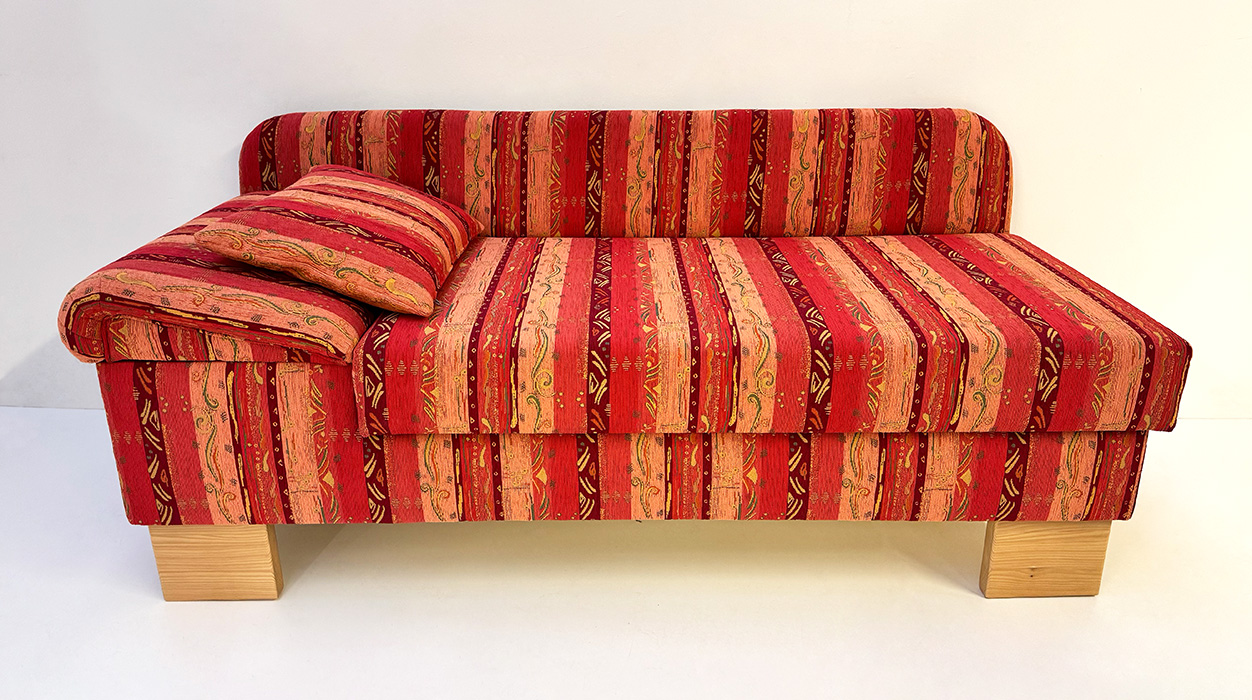 Liege Diwan Rosenheim, freistehend, aufklappbar, Kopfteil verstellbar, Eichefüße geölt, Verano 644