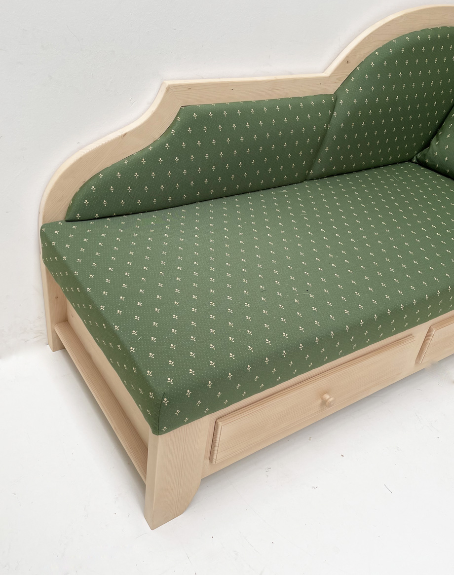 Modell: MITTENWALD, hochwertige Polsterliege mit Kopfteil wahlweise links oder rechts, wenn man davorsteht und auf die Liege sieht !