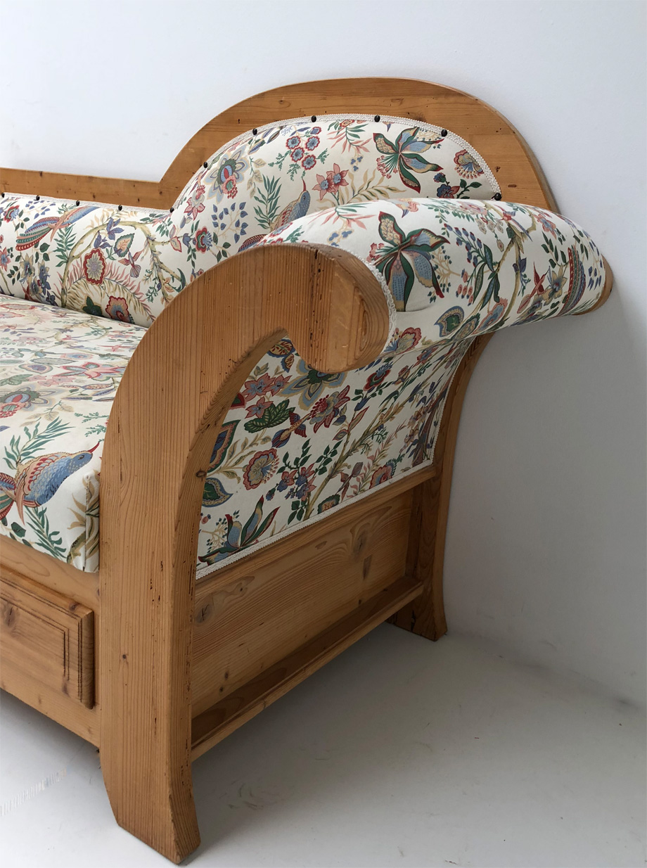 Modell: MITTENWALD, hochwertige Polsterliege mit Kopfteil wahlweise links oder rechts, wenn man davorsteht und auf die Liege sieht !