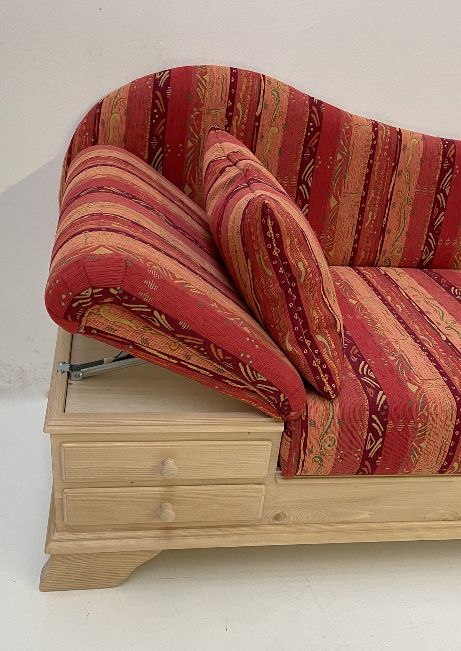 Abm: 195/75/86 cm, (L/T/H), Sitzhöhe 45 cm, Polsterung Komfort Kaltschaum, Kopfteil im Raster höhenverstellbar, Sitz mit Klappfunktion,