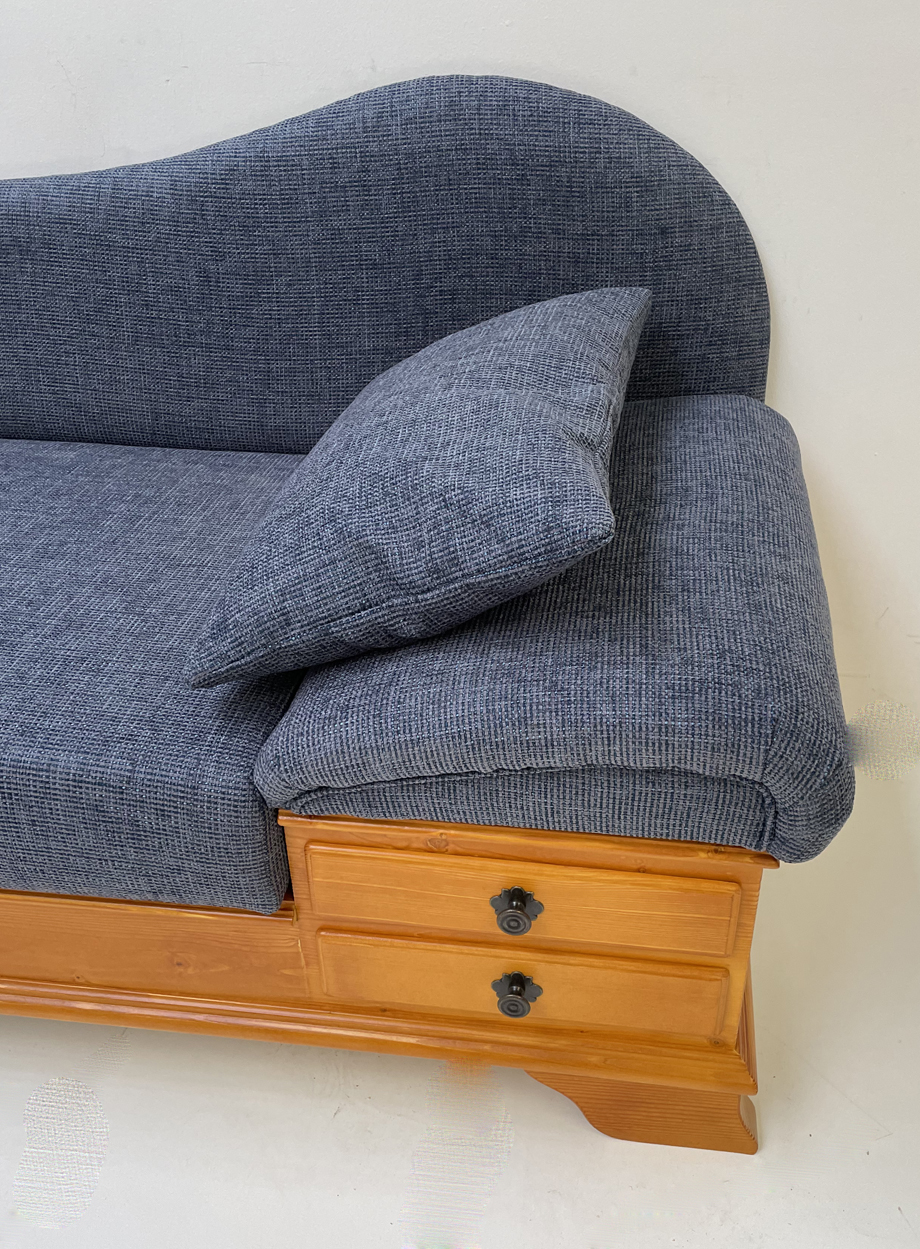Sofa Liege Chiemgau Sonderlänge 220 cm, Sonderton Honig 07 Dunkel, Stoff Natura 812 blau