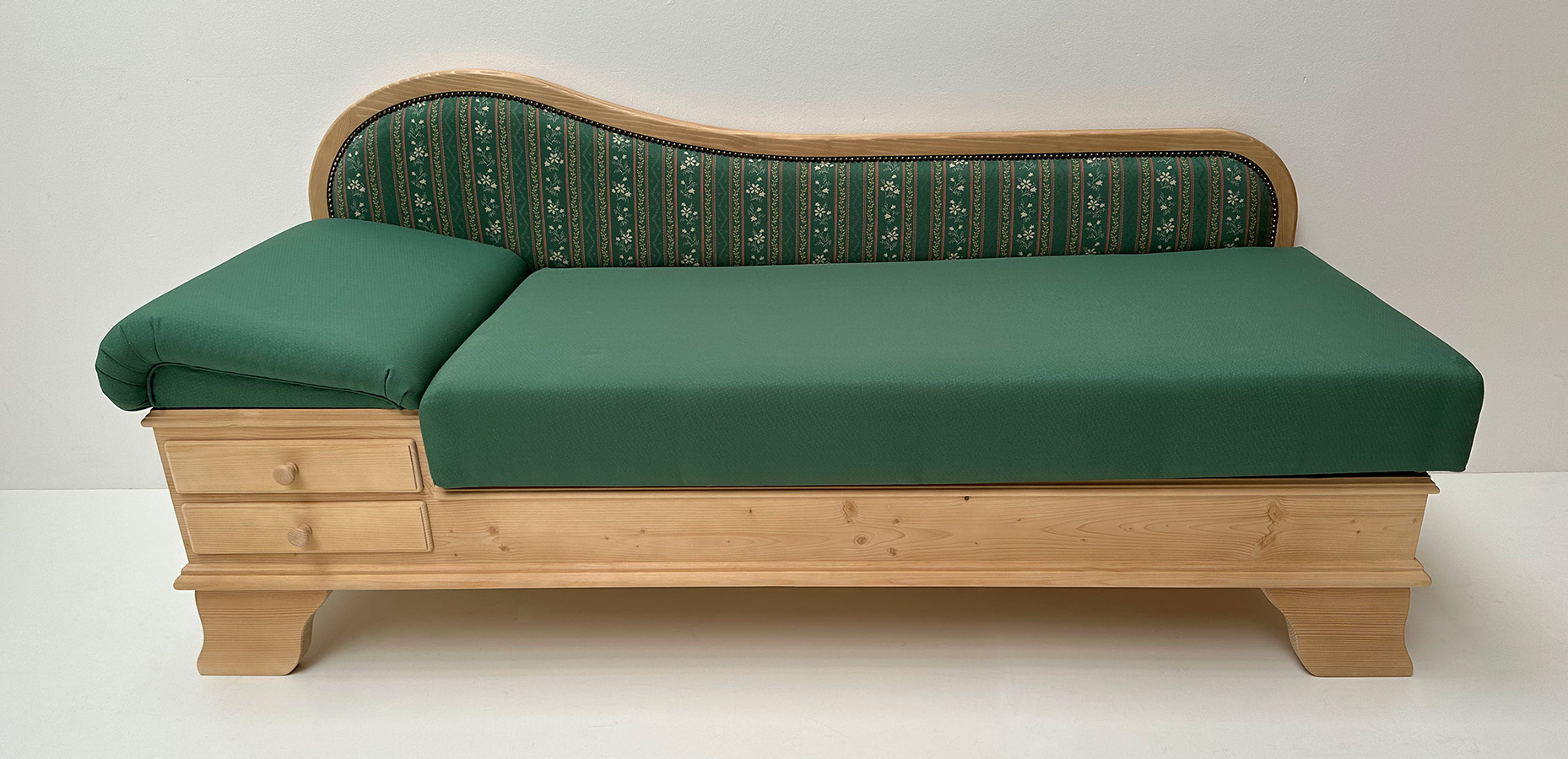 Liege mit Kopfteil links wenn man davorsteht und auf die Liege sieht, Abm: 195/75/86 cm, (L/T/H)