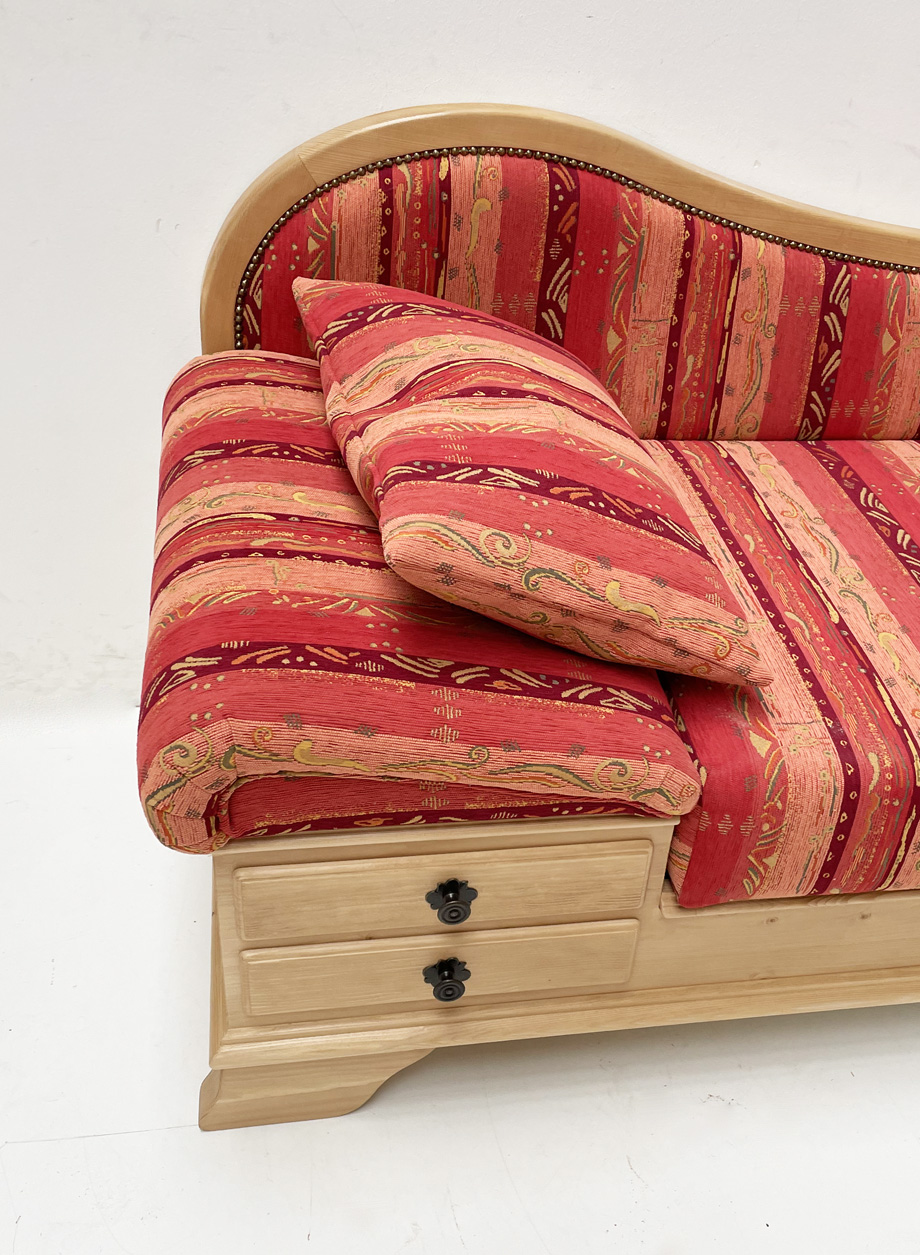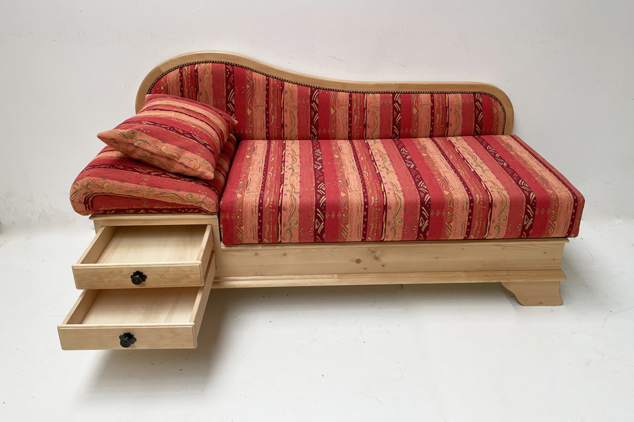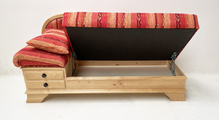 Sofa Liege Garmisch, Sonderlänge 170 cm, Kopfteil links, Rosner Hartwachs, Pocking bordeaux