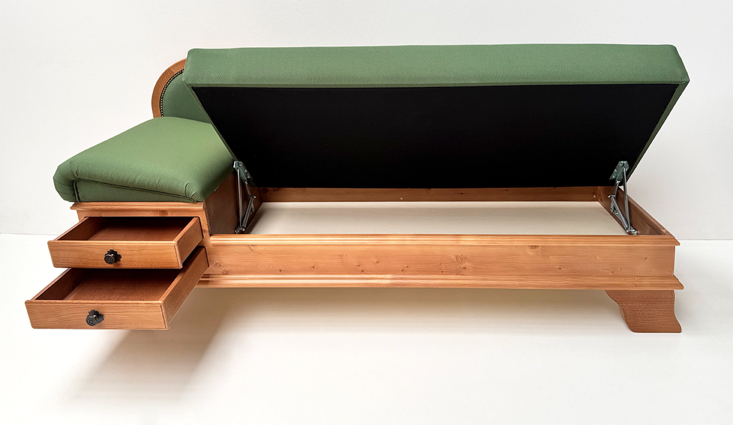 2 große Schubladen mit Metallknöpfen und Rosetten, inkl. 1 Kissen 40/60 cm mit Federfüllung