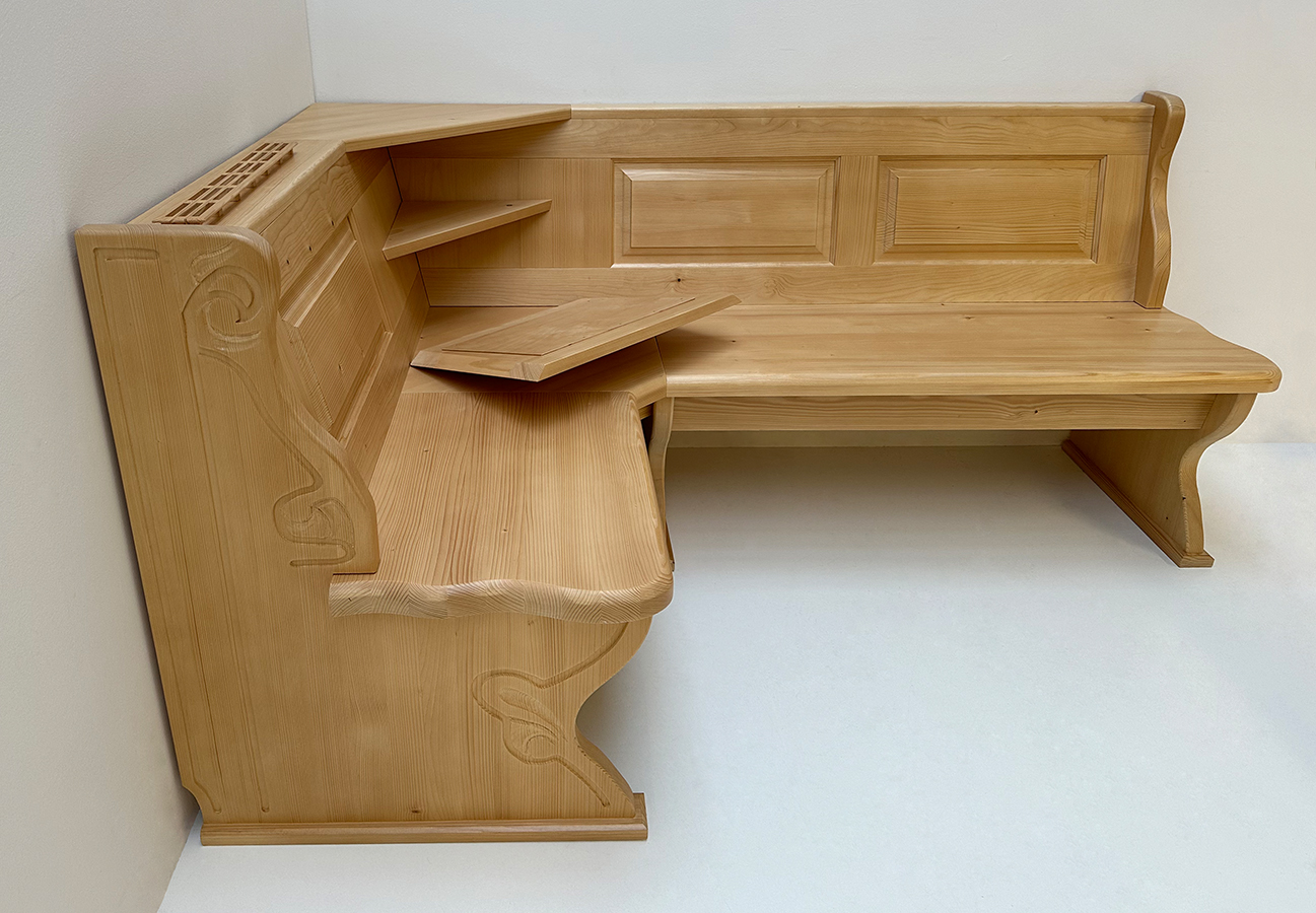 Eckbank Lindau 220/130, Truhen, Ablagen und Wangenverbreiterungen, Eckkapitel