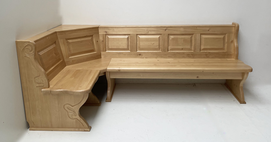 Eckbank Lindau 130/240 cm, Aussenwangen geschnitzt, Truhen aufklappbar, Ablagen Sonderbreite 10 cm