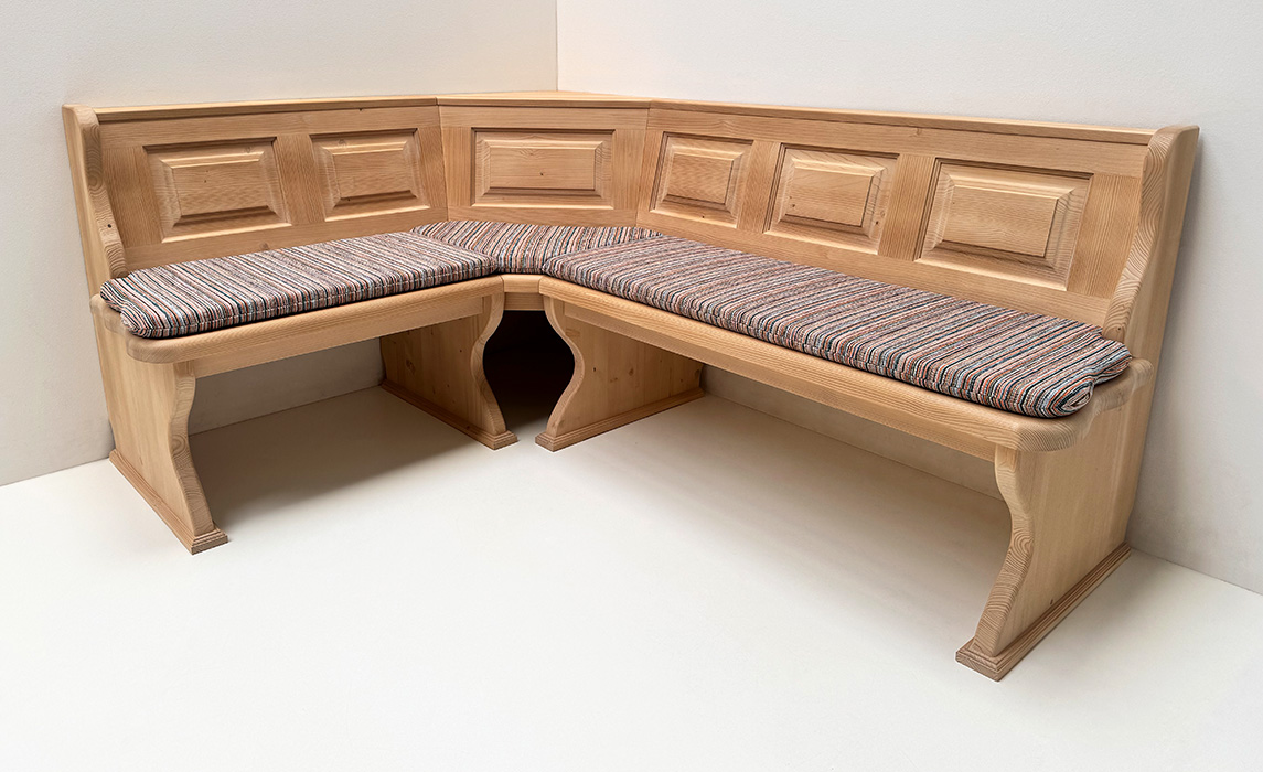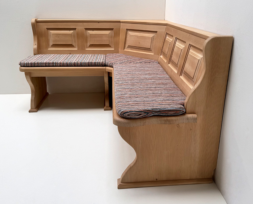 Eckbank Lindau 145/185 ohne Truhen, Höhenkürzung 83 cm, Aussenwangen glatt, gewachst, Salzburg -47