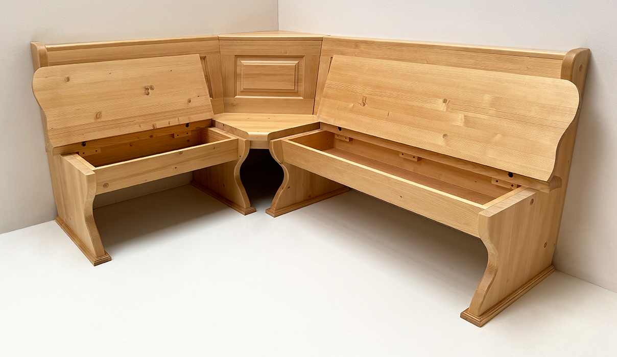 Eckbank Lindau 165/125 mit Truhen, Rosner gewachst, Polster lose genäht, Kundl grün