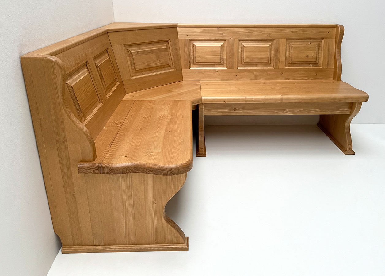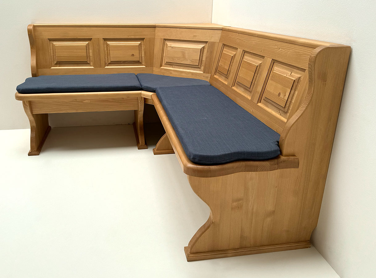 Eckbank Modell Lindau, Stellmaß A>150/185 cm mit Truhen, Außenwangen glatt