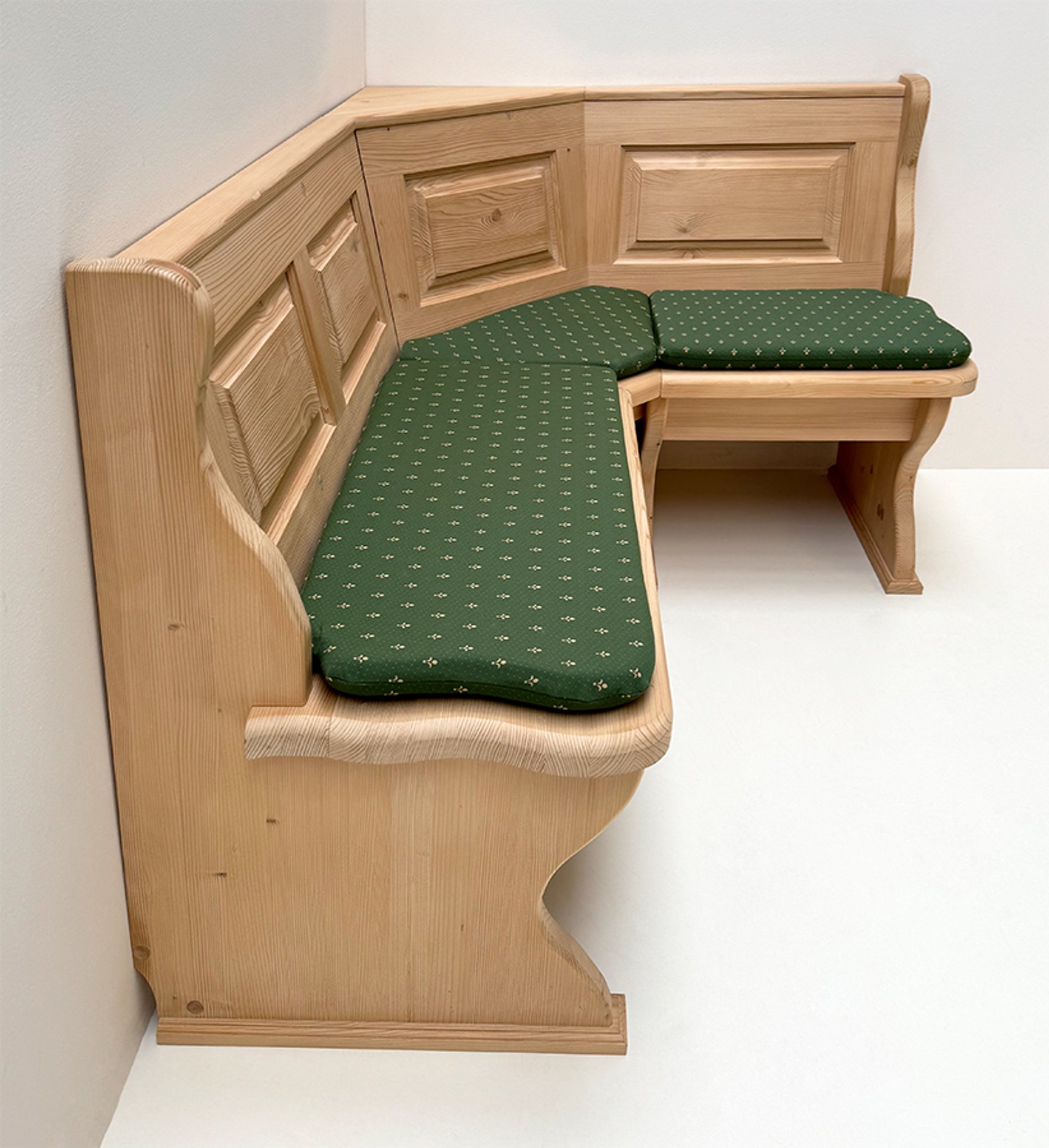 Eckbank Lindau 165/125 mit Truhen, Rosner gewachst, Polster lose genäht, Kundl grün