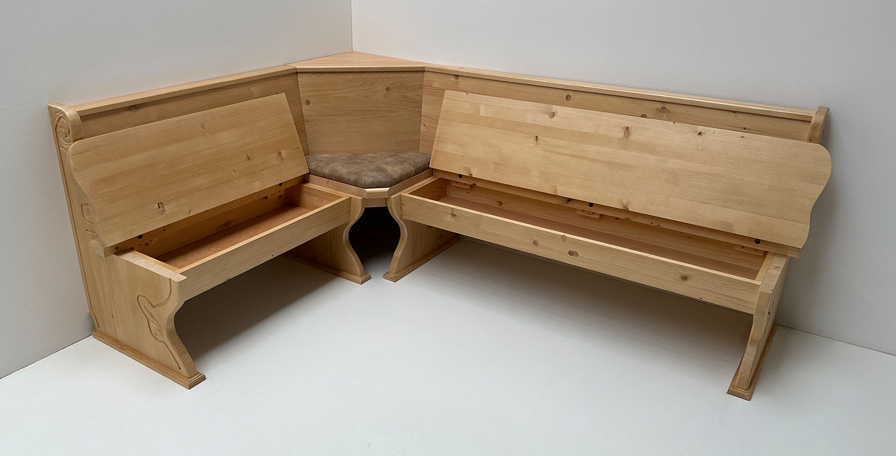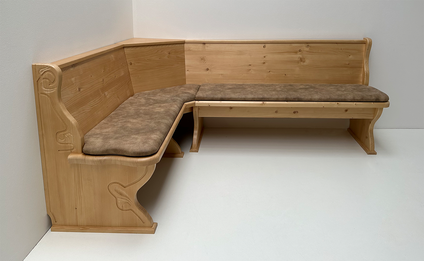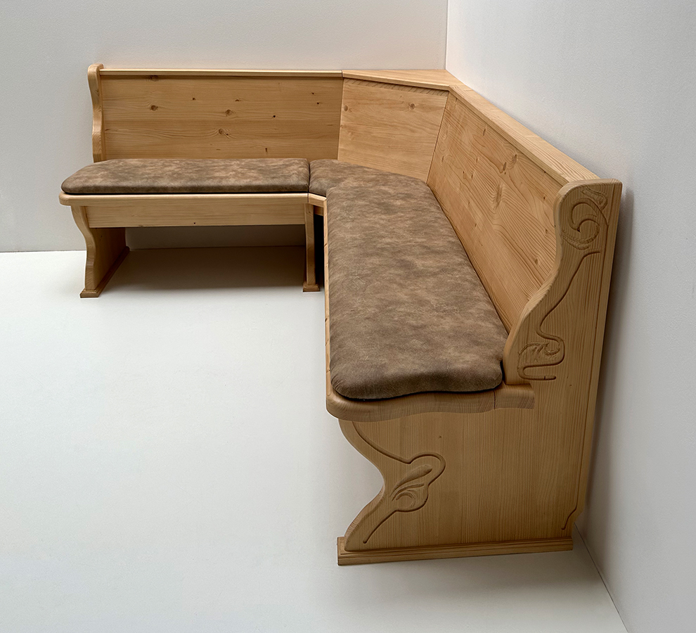 Außenwangen geschnitzt,Truhen, Sitzpolster als Polsterplatte, Bezug: Höpke Feel 400