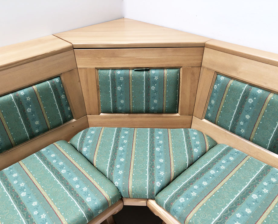 1 Eckbank Lindau ohne Truhen, Schenkelmaß 165/300 cm, Kasettenpolsterung TS-2391 grün, Ecke aufklappbar !