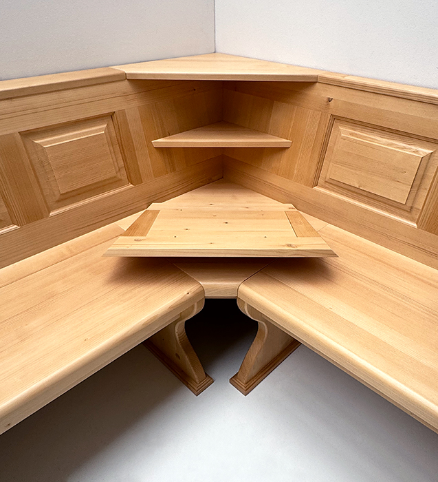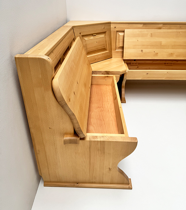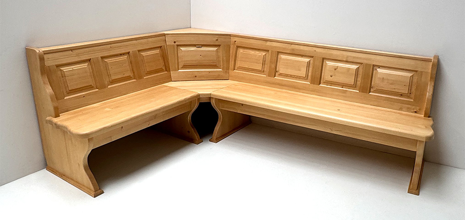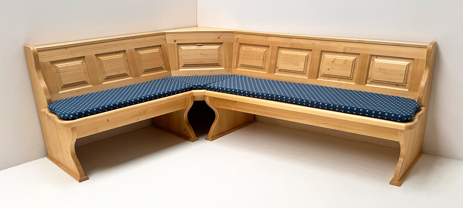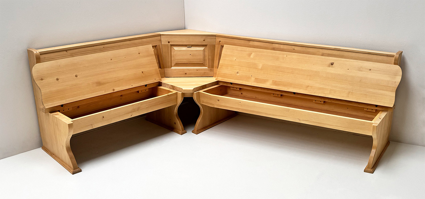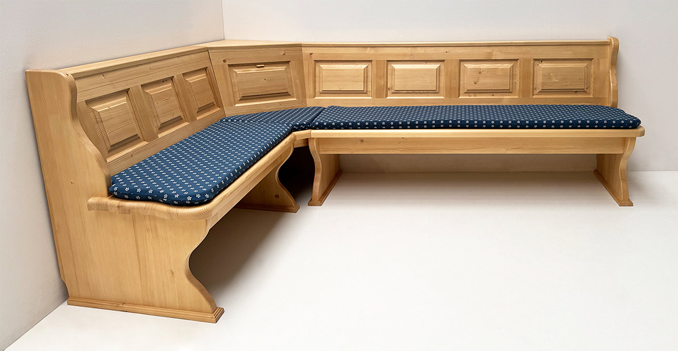 1 Eckbank Lindau, Stellmaß A>175/245 cm, Truhen beidseitig, Außenwangen glatt
