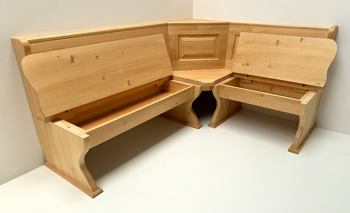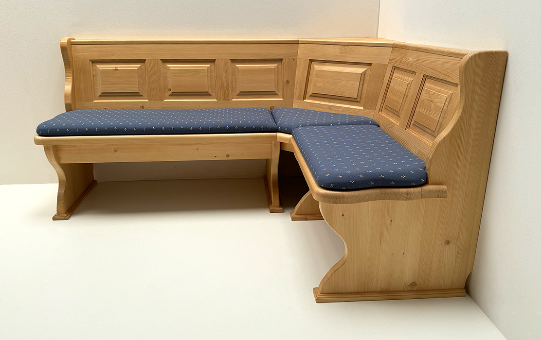 Eckbankgruppe LINDAU 230/185 Fichte, Wandverkleidung, Eckkapitel, Tisch Amberg, Stuhl 81, TS-1301