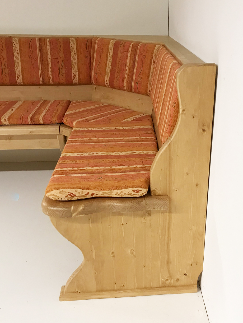 Aussenwangen glatt, Eckbank Sitzpolster genäht mit Reissverschlüssen zum Abziehen und waschen, Rücken Vollpolster mit Sichtholz