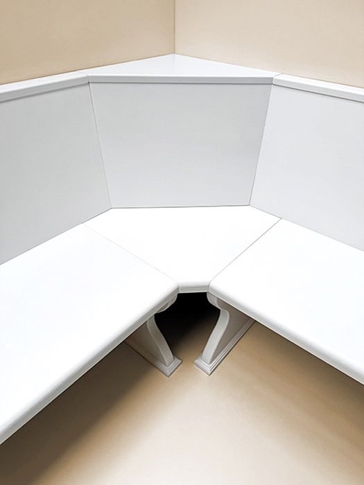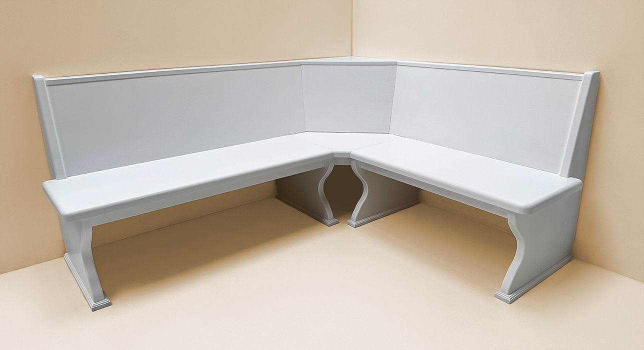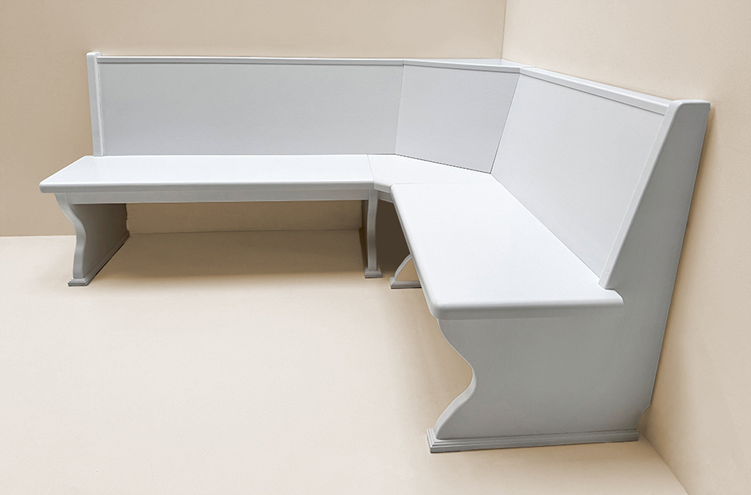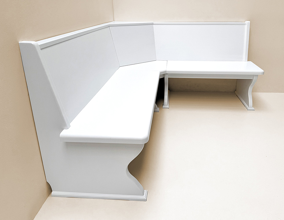 Eckbank Lindau 210/310 mit Truhen, Glattrücken, ohne Kassetten, Ablagenverbreiterung, Höhenkürzung
