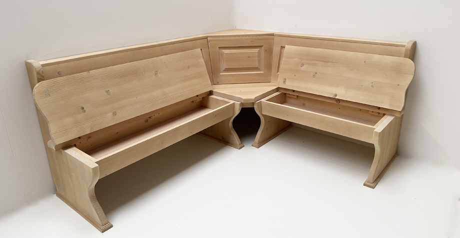 Eckbank Lindau 195/165 mit Truhen, Ecke aufklappbar, Rosner gewachst