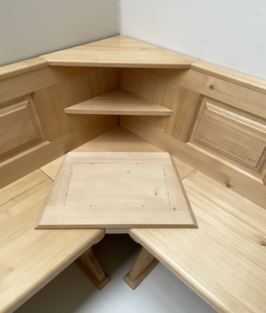 Eckbank Lindau 260/185, Ablagenverbreiterung, Wangenverbreiterung, Heizungsgitter, Ecke aufklappbar