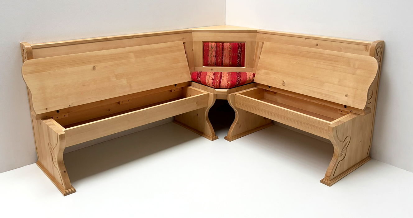 Eckbank Lindau 195/165 mit Truhen, Ecke aufklappbar, Rosner gewachst