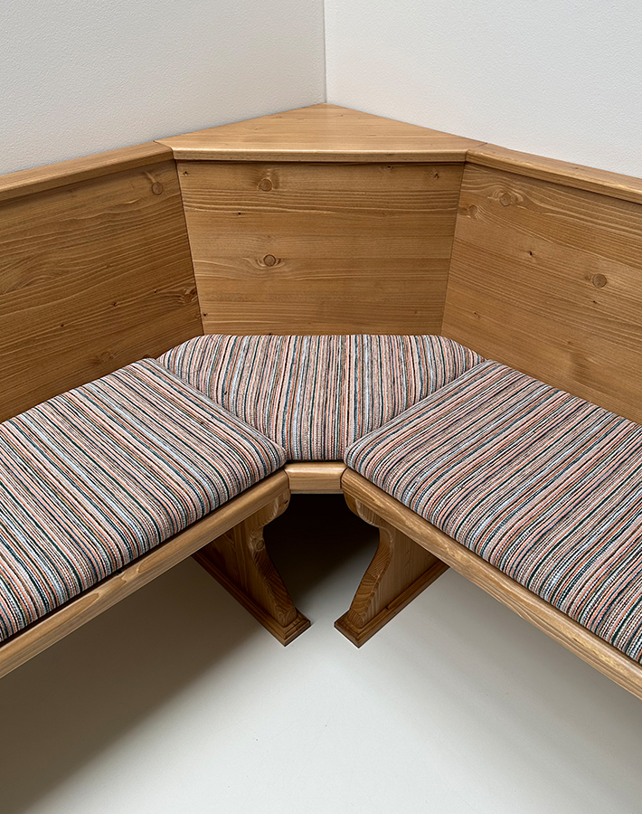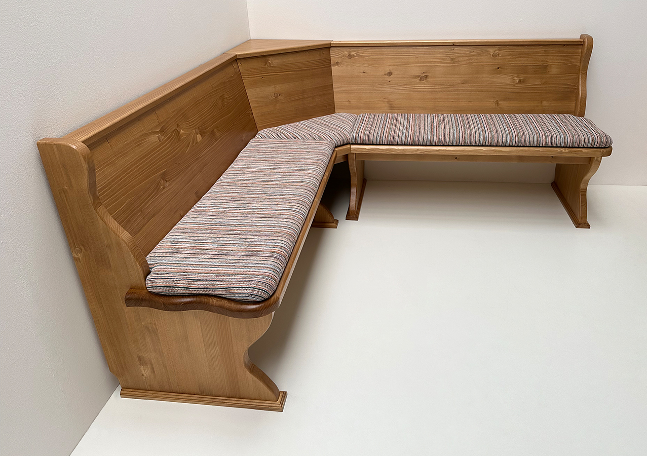 Eckbank im Schenkelmaß 195/195 cm, ohne Truhen, Glattrücken, ohne Kassetten, starker Sitz und starke Wangen 4 cm,