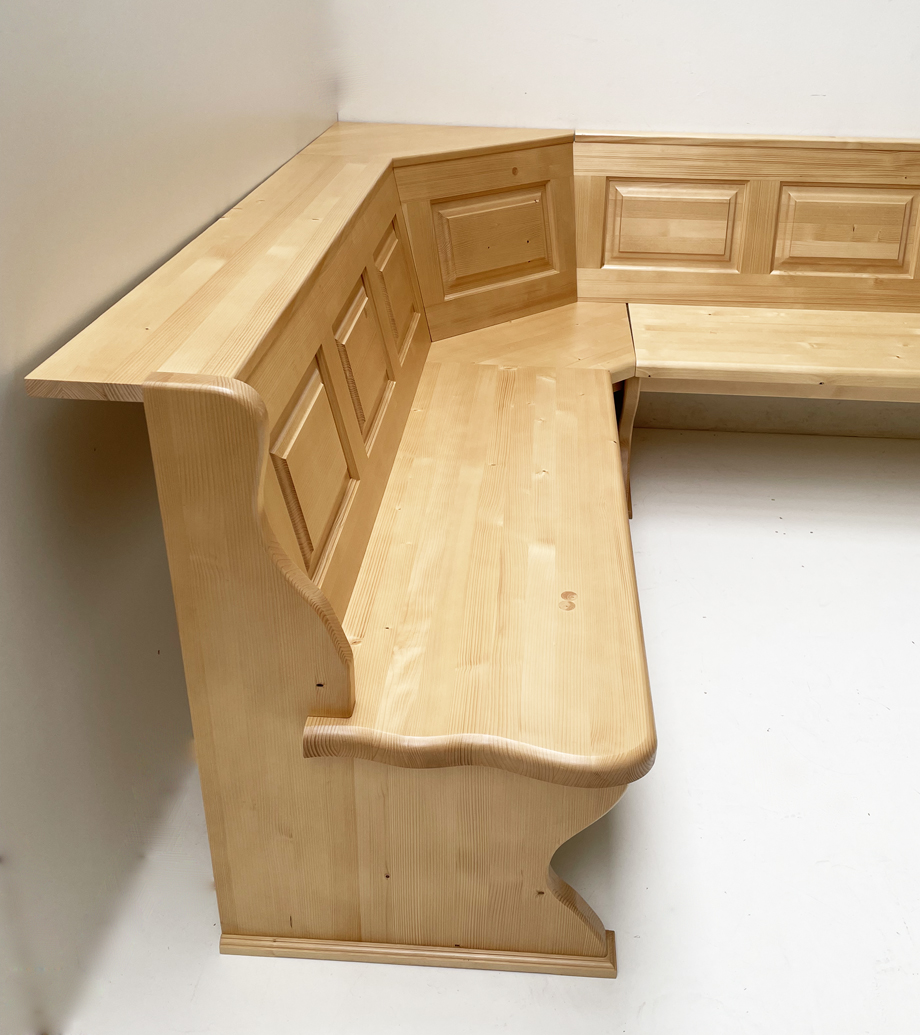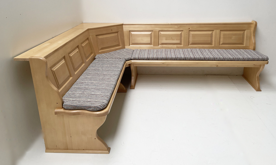 1 Eckbank Lindau, Stellmaß A> Gesamtmaß 195/260 cm, ohne Truhen, Fichte massiv, Ablagenhöhe 87 cm, Wangenhöhe 89