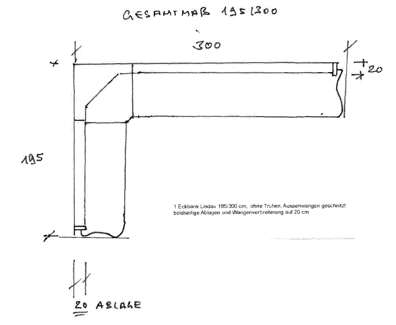 Schenkel Rechts 300 cm mit Ablagen und Wangenverbreiterung auf 20 cm