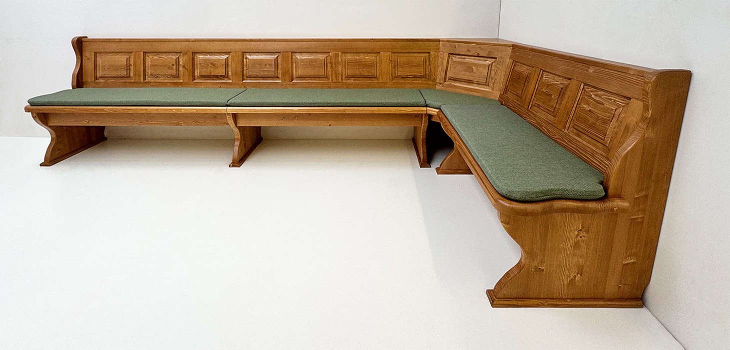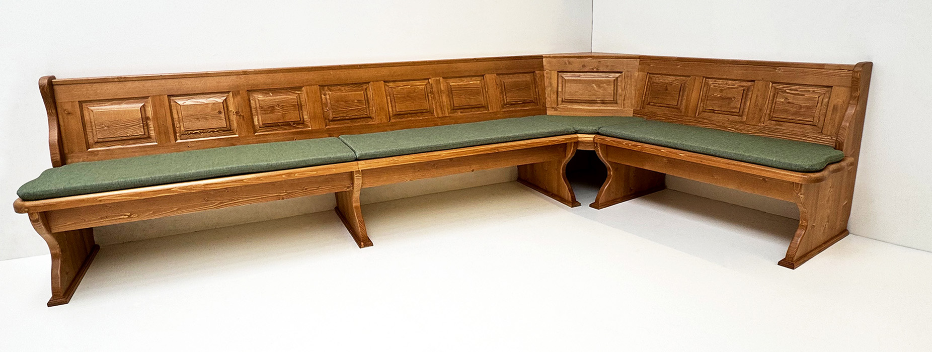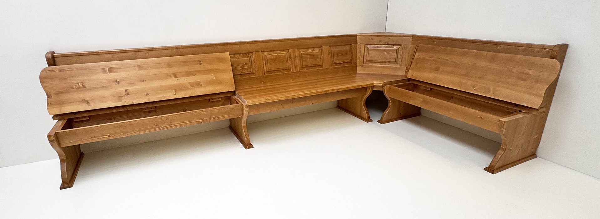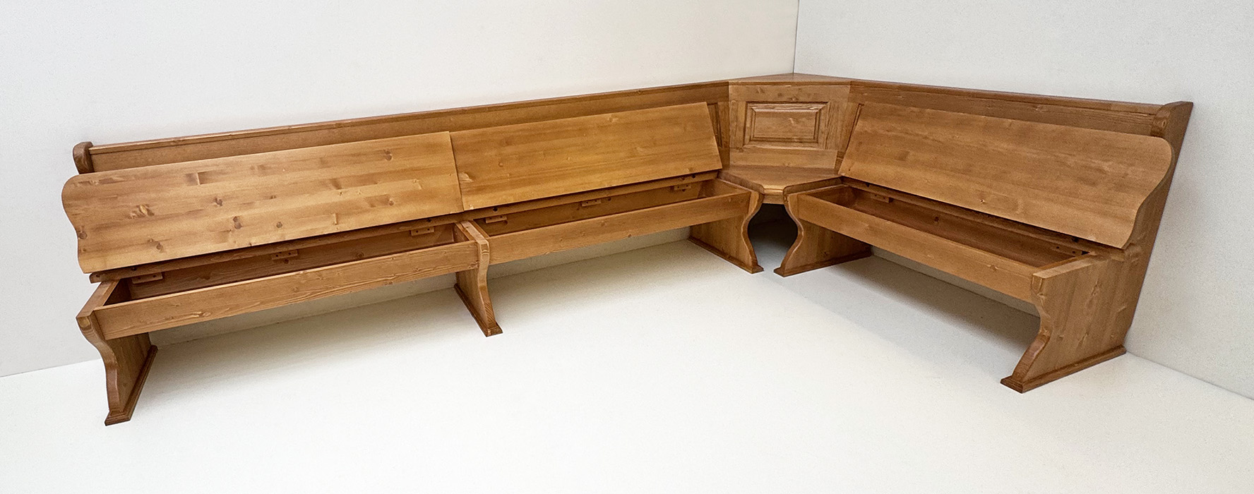 1 Eckbank Lindau Stellmaß B>345/185cm, starker Sitz und starke Wangen, mit Truhen aufklappbar,