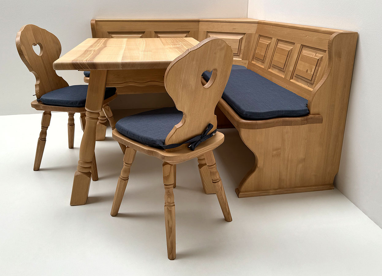 Eckbankgruppe LINDAU 150/185 Fichte, Tisch 4510-Amberg, Stuhl Munich, Armlehnstuhl Munich, Polster