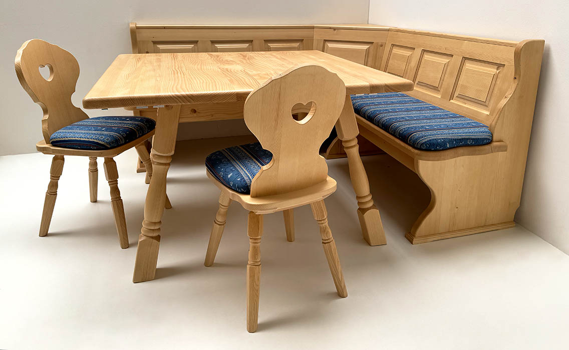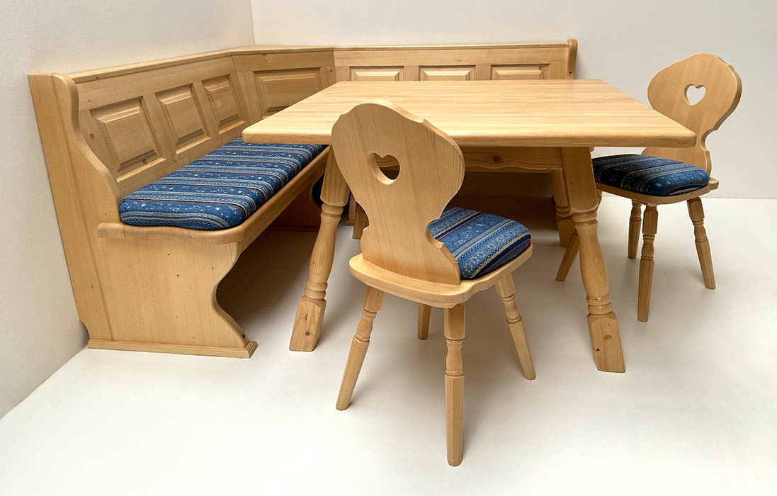Eckbankgruppe LINDAU 165/125, Fichte, Tisch 4510 Amberg, Bauernstuhl, Armlehnstuhl Vienna Kundl grün