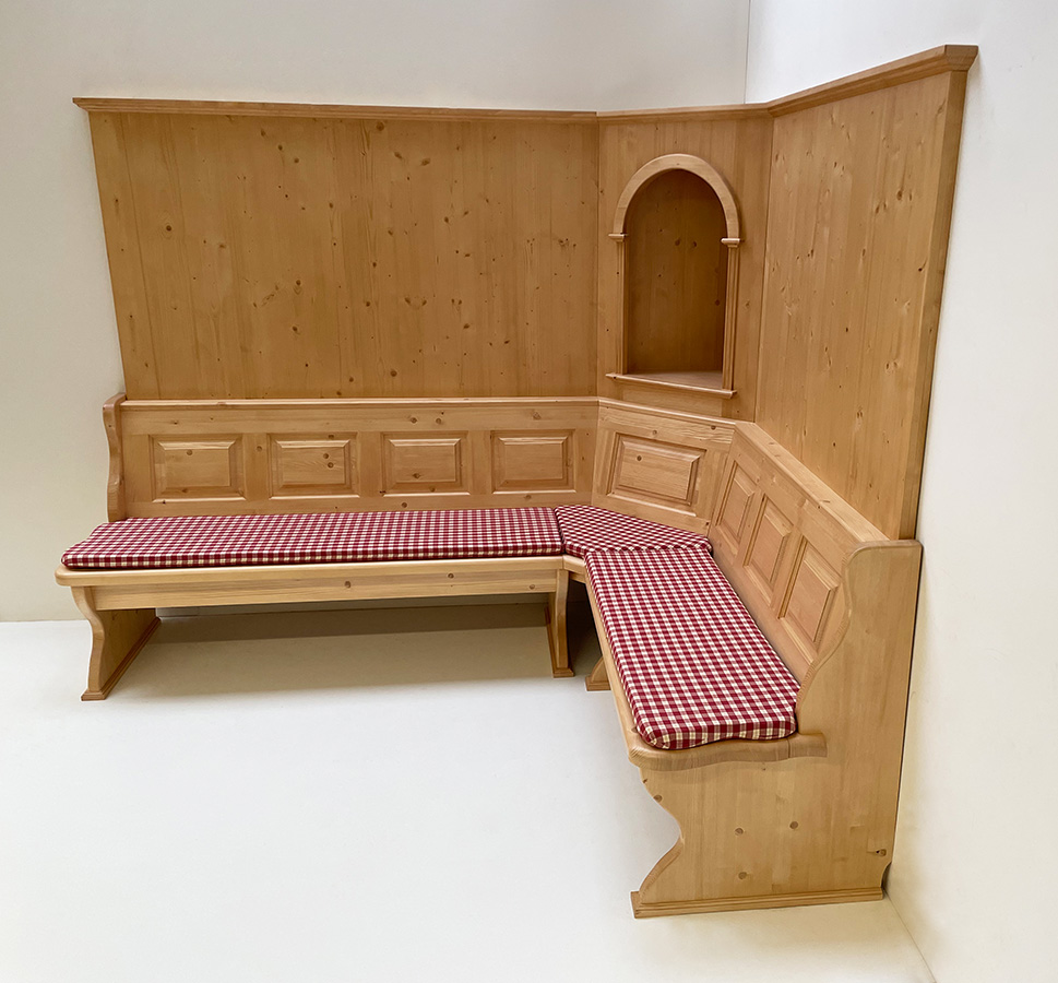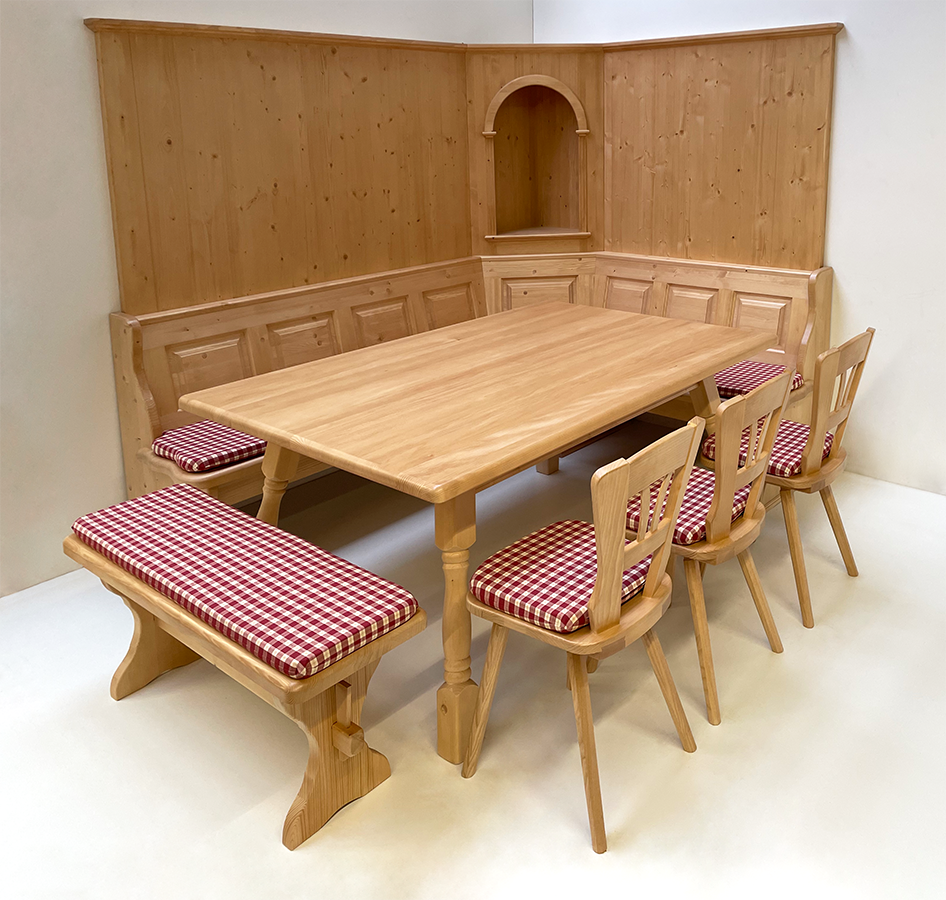 Eckbankgruppe LINDAU 230/185 Fichte, Wandverkleidung, Eckkapitel, Tisch Amberg, Stuhl 81, TS-1301