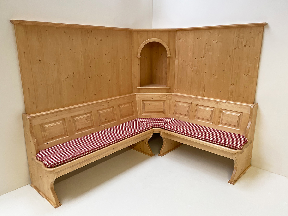 1 Eckbank 230/185 cm, gerade Kassetten, starker Sitz 4 cm, mit Truhen, Außenwangen glatt