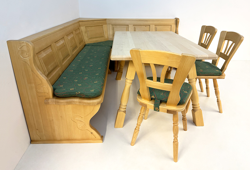 Eckbankgruppe LINDAU 125/165 Fichte, Tisch 4510-Amberg, Bauernstühle Vienna, Polster genäht TS-1667