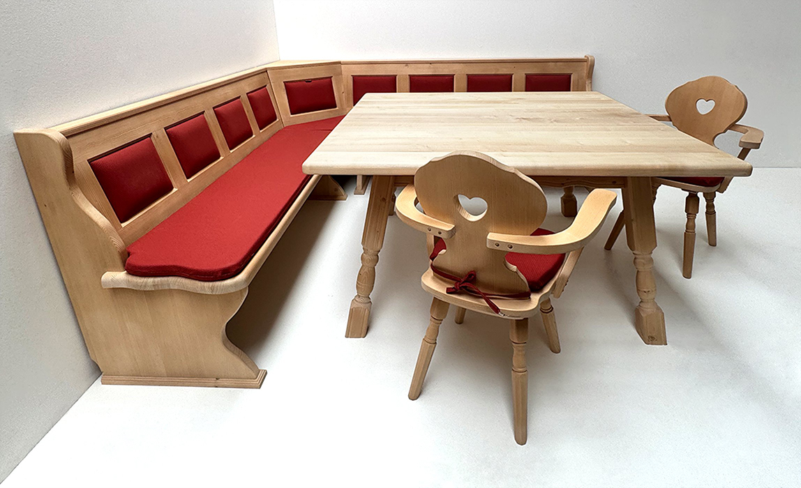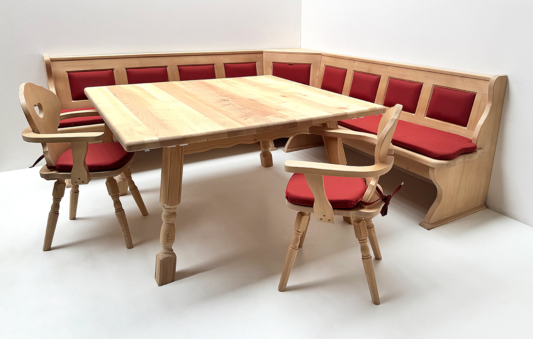 Eckbankgruppe LINDAU 165/125, Fichte, Tisch 4510 Amberg, Bauernstuhl, Armlehnstuhl Vienna Kundl grün