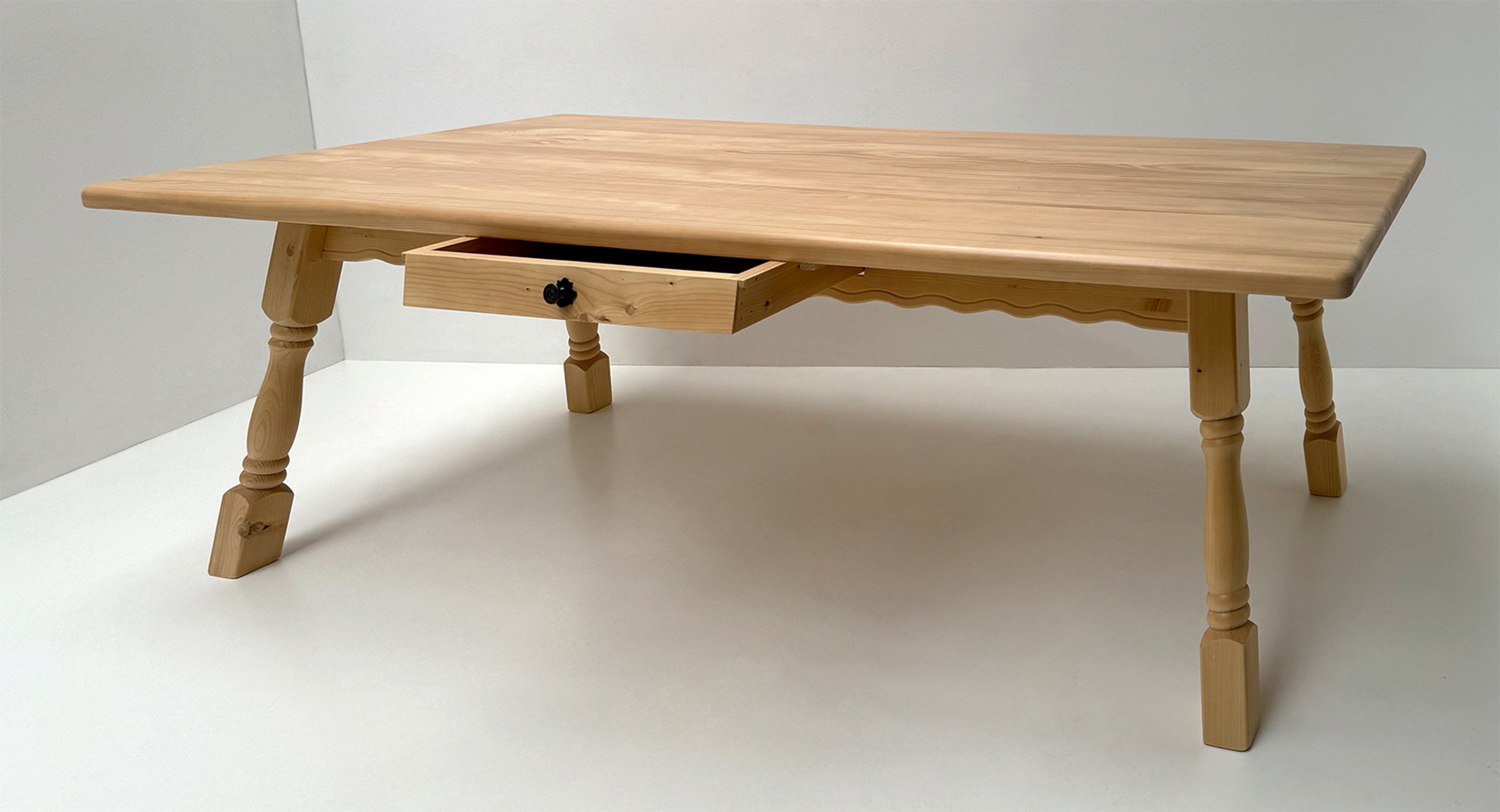 Vierfußtisch 4510, 180/120 cm, mit Schubladen, Fichteplatte Rosner lackiert