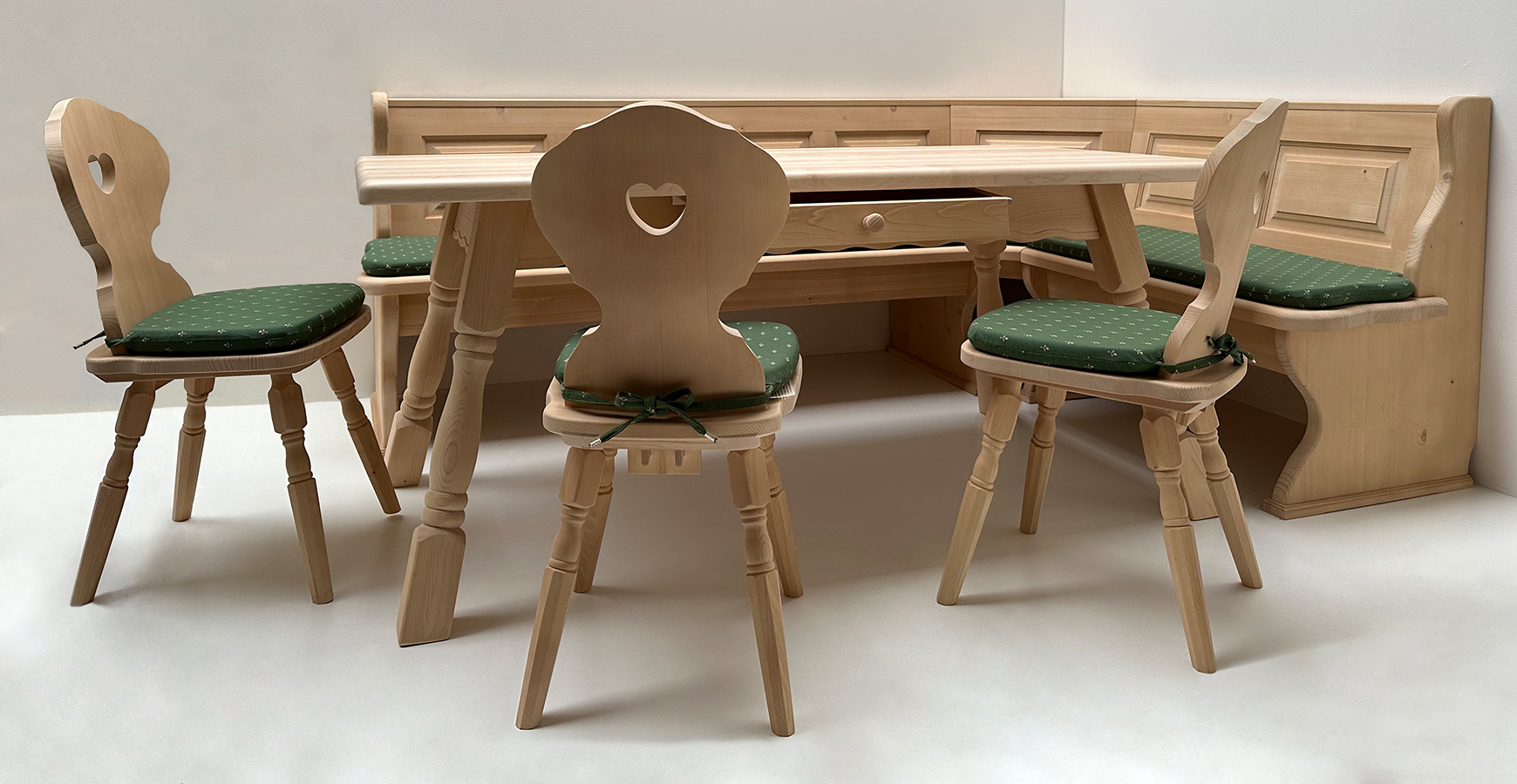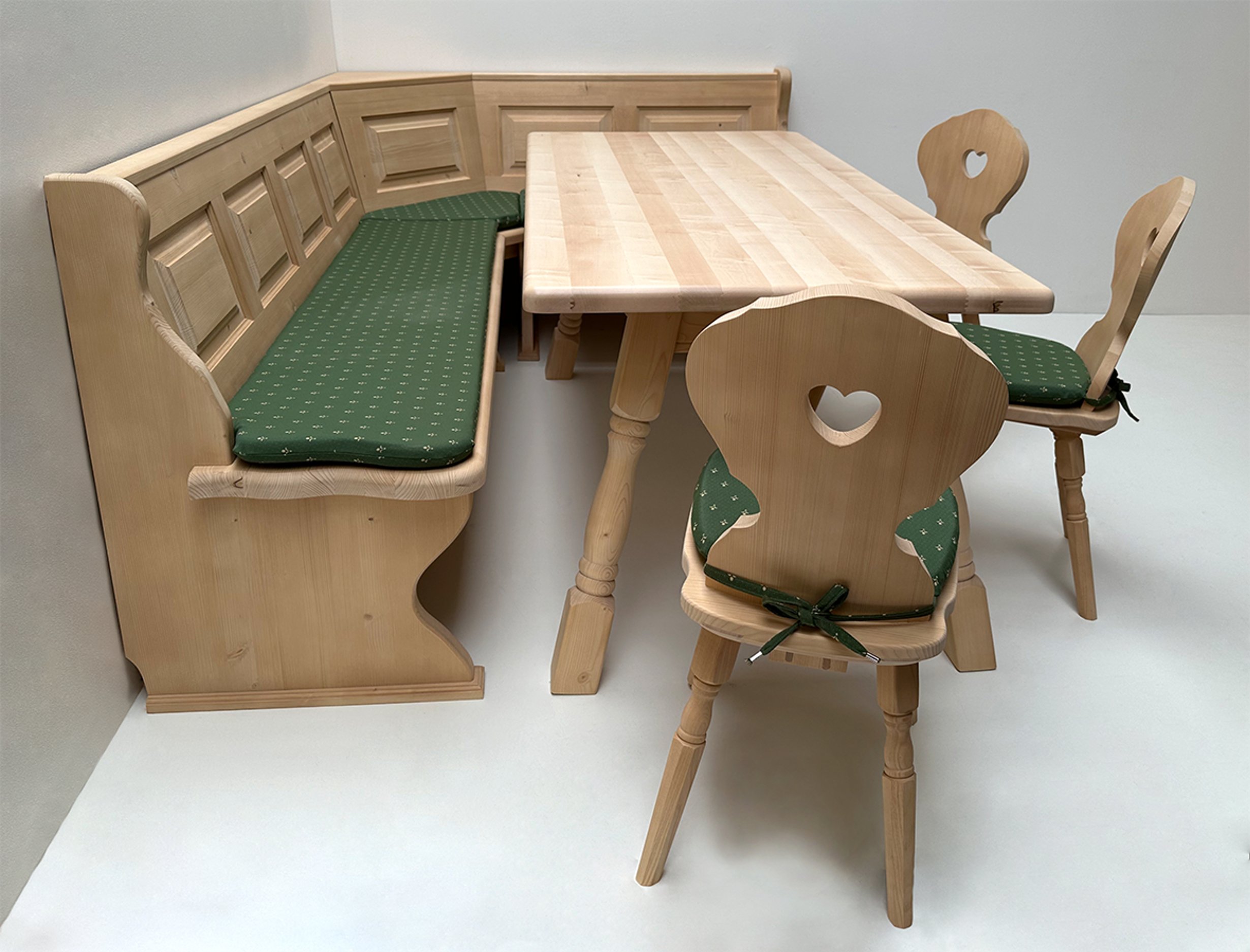 Eckbankgruppe Lindau, Fichte massiv: Rosner gewachst, Tischplatte Ahorn natur lackiert